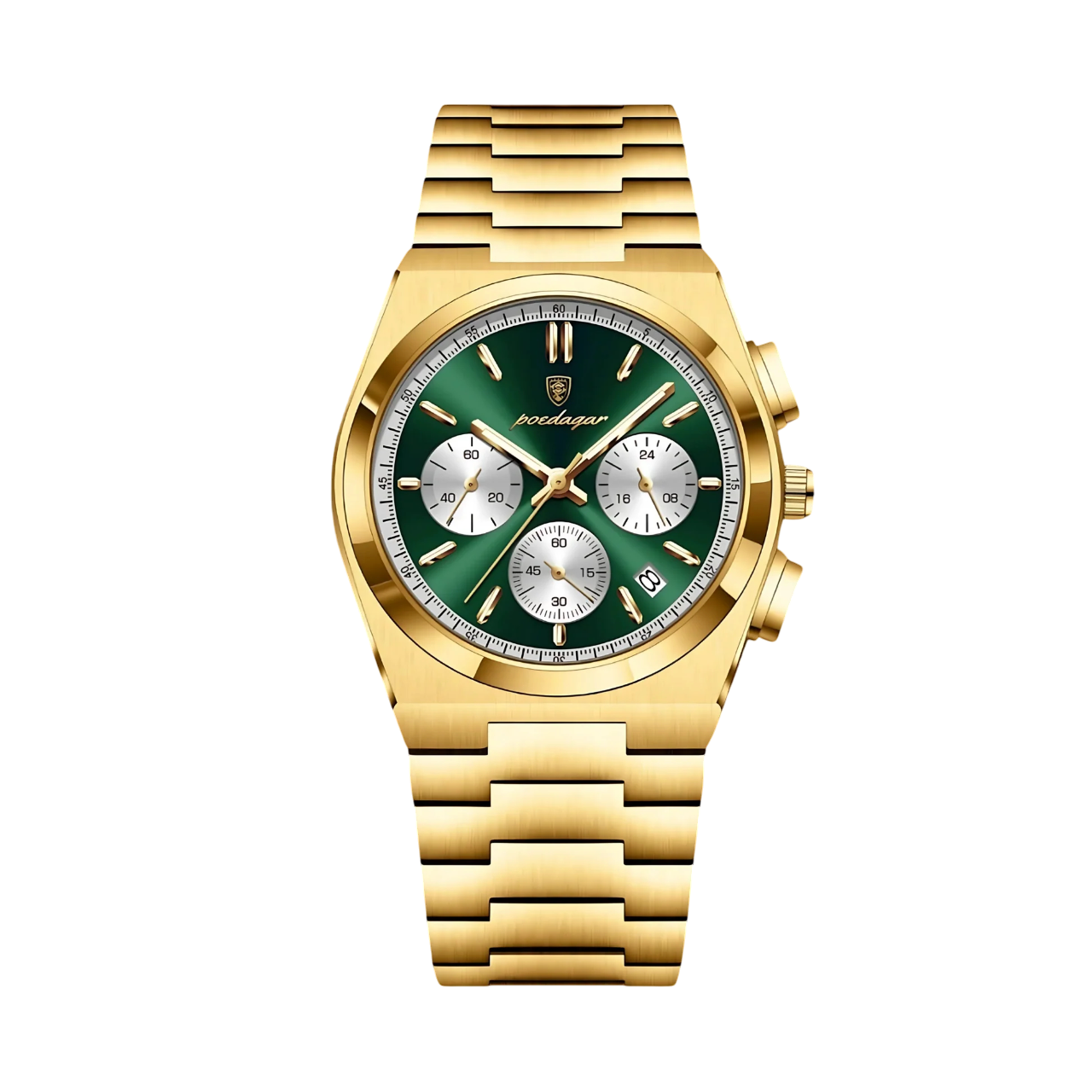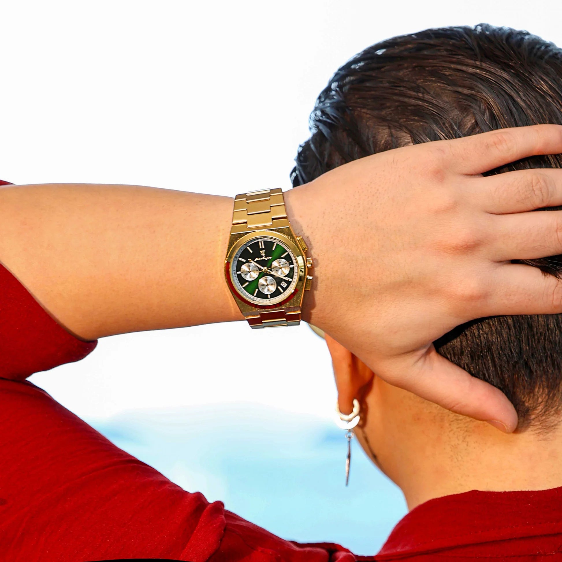 The Silverthorne immediately feels like a statement piece. The gold tone shines brilliantly and the green dial adds real character. It has presence without being gaudy. Every time I wear it, people ask me what brand it is.