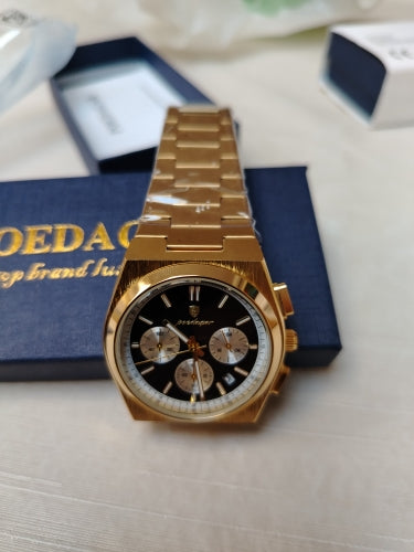 If you want a watch that turns heads, this is it. The combination of gold and green is bold but classy. The crystal remains spotless after weeks of wear, and the bracelet feels smooth and secure.